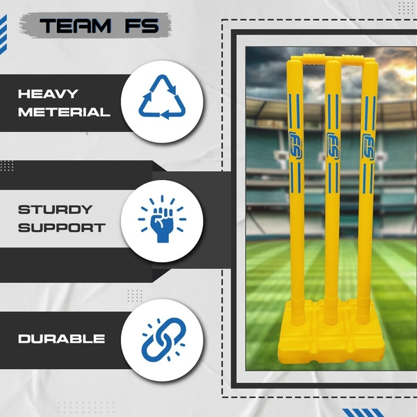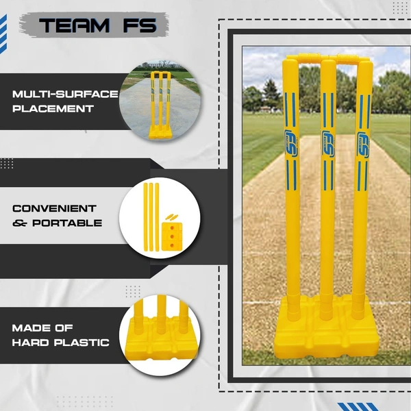 Team FS Sports Plastic Cricket Wicket Set – Lightweight, Durable Stumps with Base | For Kids, Practice & Tennis Ball Cricket